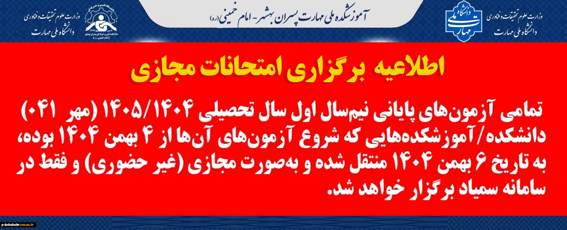 اطلاعیه امتحانات پایان ترم 2